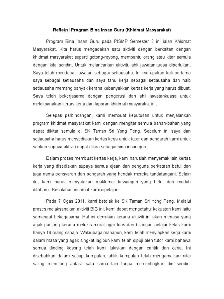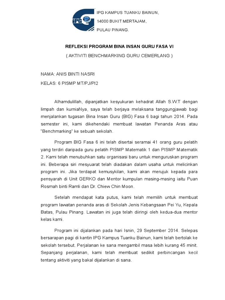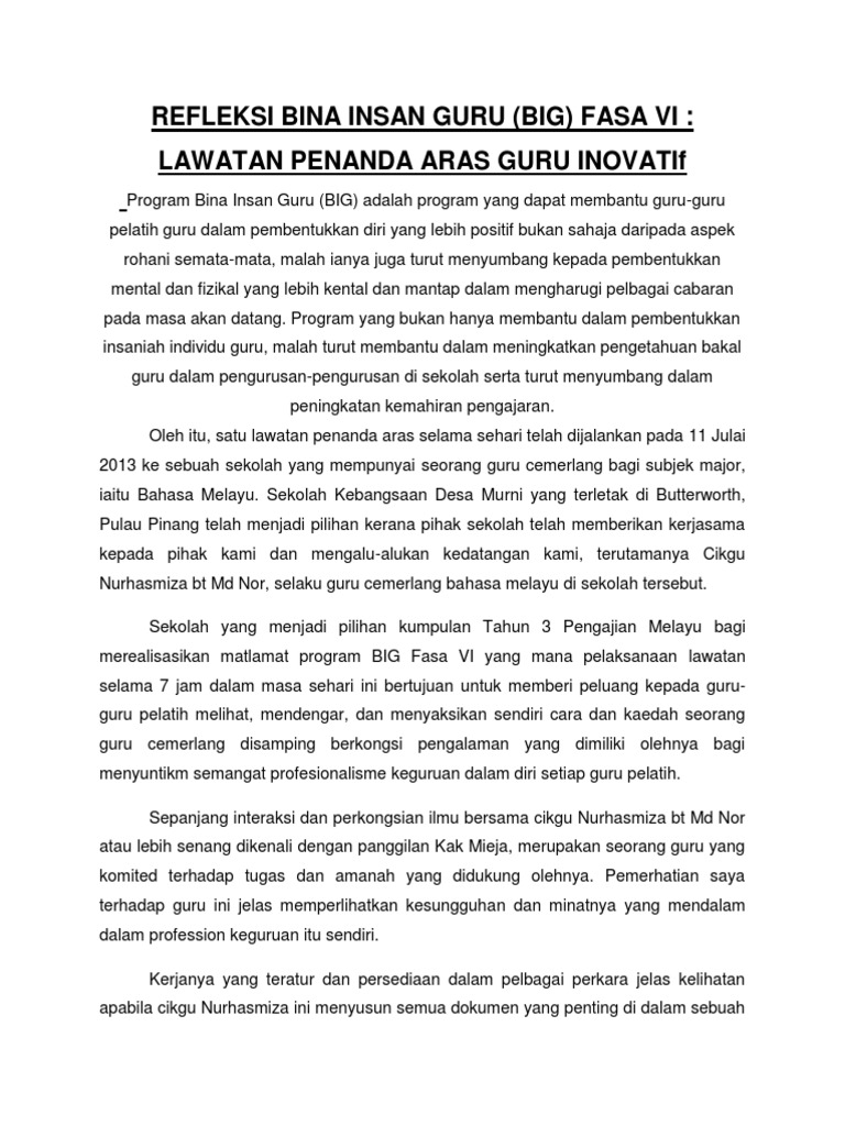 Refleksi Program Bina Insan Guru Fasa Vi Pdf